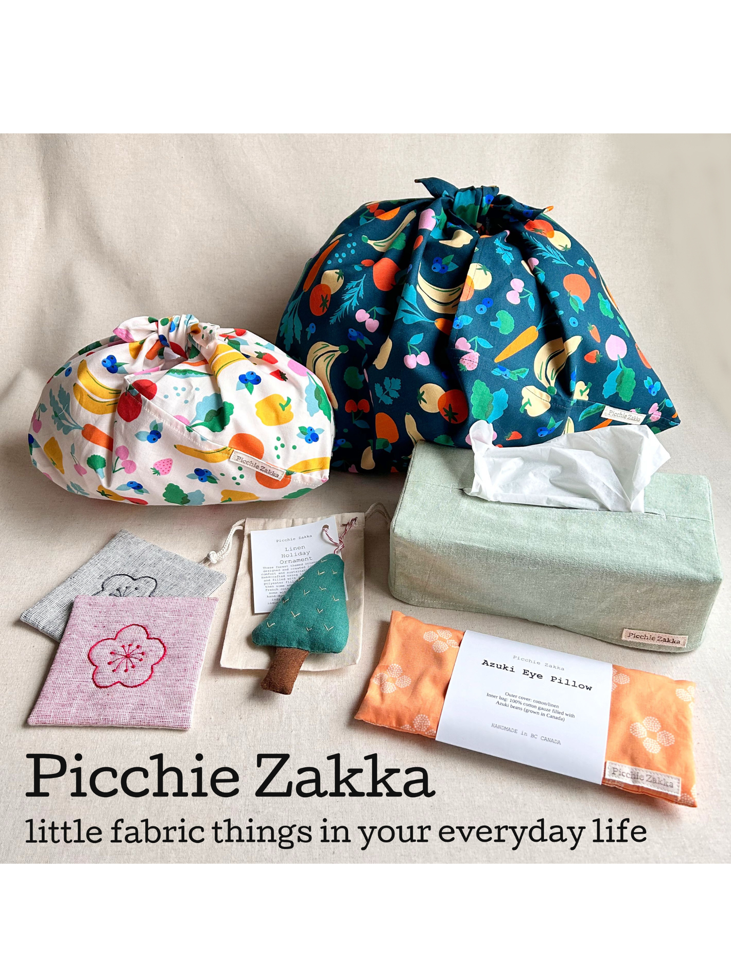 Meet local maker Midori, the creative behind Picchie Zakka. She creates handcrafted fabric “zakka”—little everyday items that bring comfort, charm, and function. Made from natural materials like cotton and linen, each piece reflects a subtle Japanese influence and is carefully crafted in Surrey, BC.
